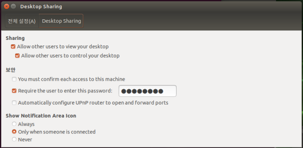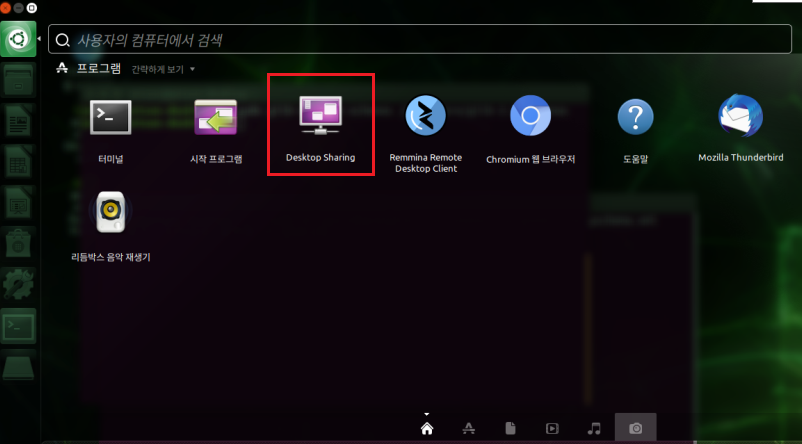 3. Desktop Sharing 프로그램을 찾아서 실행한 뒤 다음과 같이 설정한다.