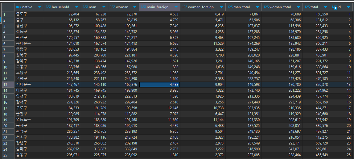 //Id는 자동생성이므로 입력하지 않는다
