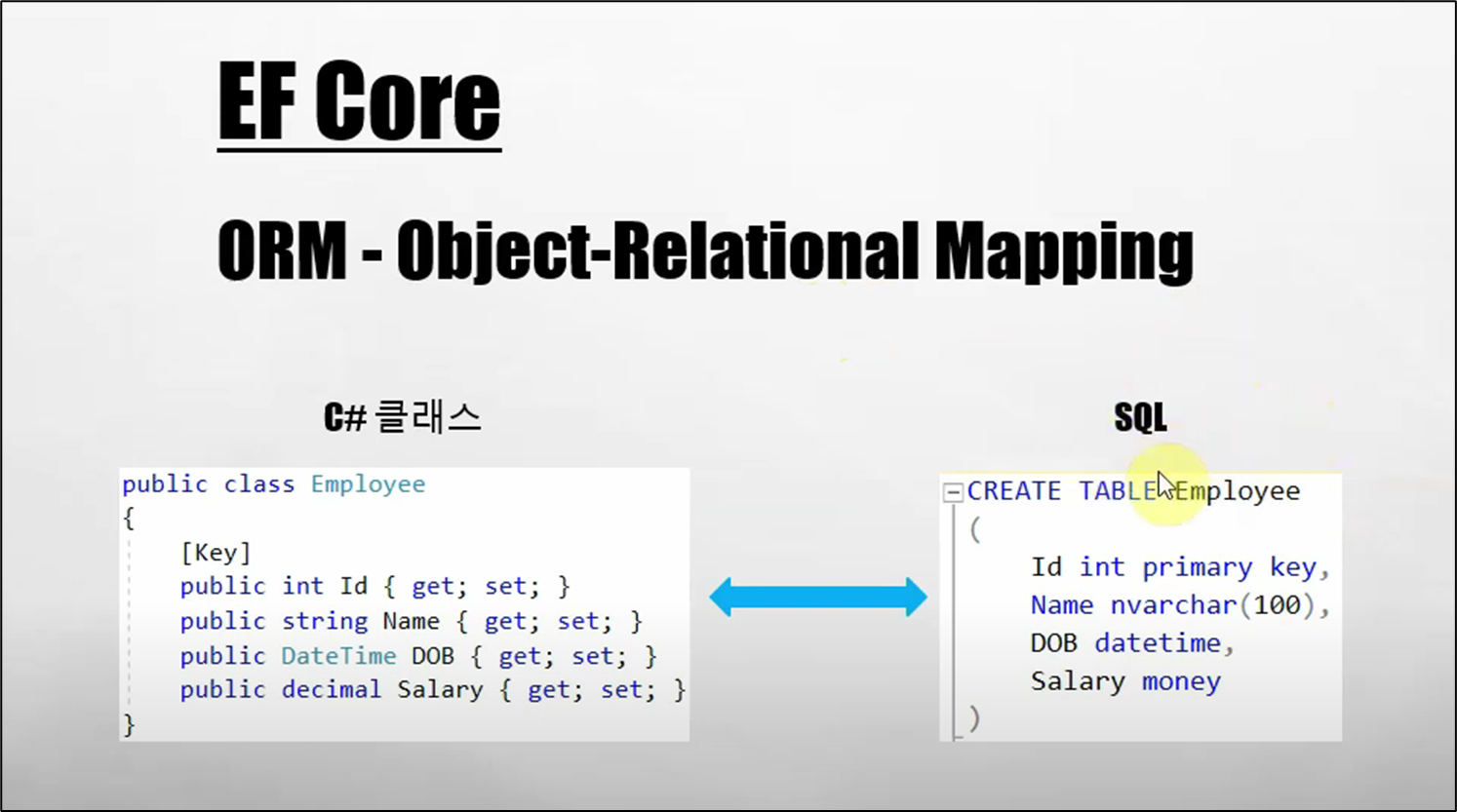 - C# 클래스 - SQL Server 매핑 관계를 만들어서 서로 주고받게 하겠다 => ORM Tool